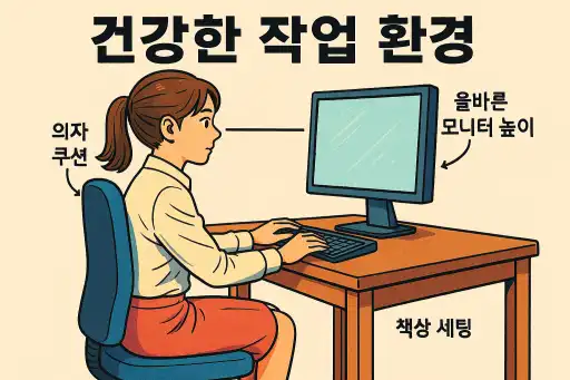 - 모니터 높이 조절: 눈높이에 맞춰 책 받침이나 모니터 암 활용