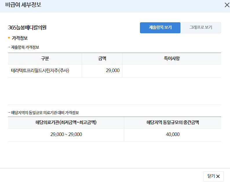 HIRA 비급여진료비정보에 접속해서 (글 하단에 링크 남기겠습니다.)