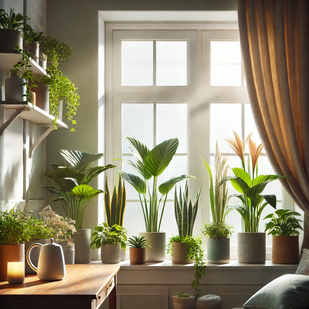 스파티필름, 산세베리아, 관음죽 같은 식물은 포름알데히드, 벤젠, 트리클로로에틸렌과 같은 실내 유해 물질을 흡수합니다. 또한, 미세먼지를 흡착해 공기를 정화하는 기능도 있습니다.