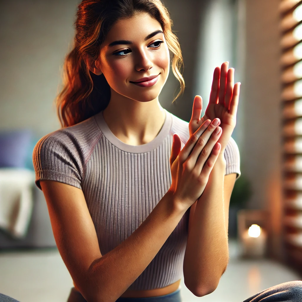 - 두 손바닥을 마주 대고 문질러 손을 따뜻하게 만듭니다. 이 과정은 손의 열이 눈 주위에 전달되어 더욱 효과적으로 긴장을 풀어줄 수 있도록 돕습니다. 손바닥이 충분히 따뜻해질 때까지 약 10~15초간 문질러 주세요.