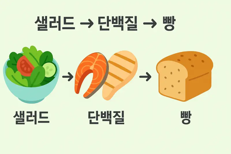 - 식전 샐러드: 채소의 식이섬유가 탄수화물 흡수를 늦춤