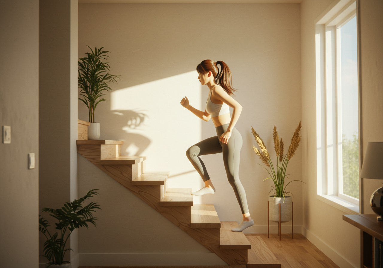 아파트 복도나 실내 계단 등 짧은 구간이라도 의식적으로 이용해보세요. 허벅지 근육이 하중을 직접 받으면서 자연스럽게 운동 효과를 얻을 수 있습니다. 엘리베이터 대신 계단을 오르내리는 습관은 하체 전체의 근력 강화와 열량 소모에도 큰 도움이 됩니다. 또한 집안 청소를 할 때도 무릎을 살짝 굽혀 허벅지 힘으로 자세를 유지하는 등, 사소한 움직임 하나하나가 하체 근육을 탄탄하게 만드는 데 기여합니다.