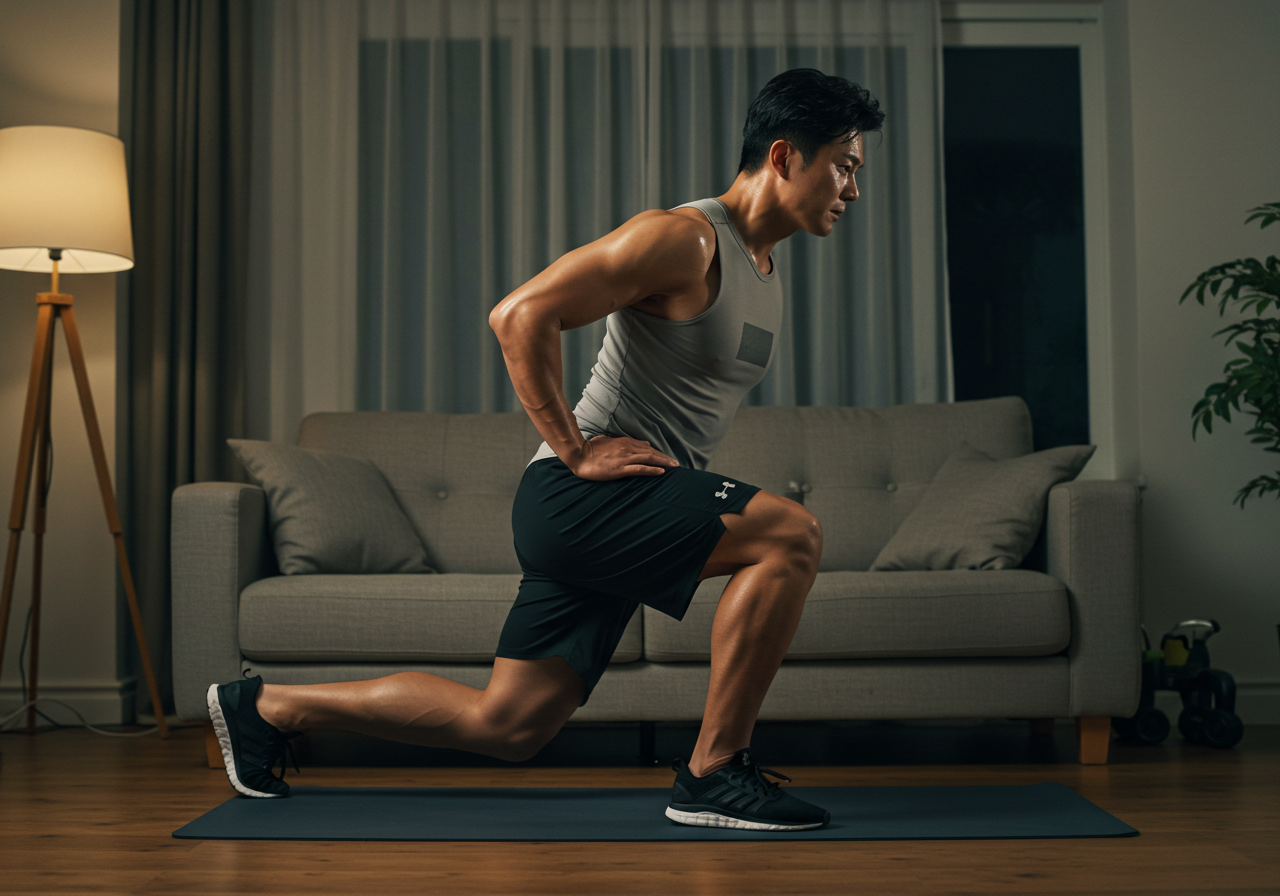런지는 양발을 앞뒤로 벌려 무릎을 굽히며 내려가는 운동으로, 허벅지 앞쪽뿐 아니라 뒤쪽 근육(대퇴이두근)과 엉덩이 근육에도 좋은 영향을 줍니다. 실내에서 장소 제약 없이 진행 가능하며, 제자리 런지나 워킹 런지 등으로 동작을 다양하게 변형할 수 있다는 장점이 있습니다. 런지는 처음 시도 시 균형이 흔들리기 쉬우니, 벽이나 의자를 살짝 짚어 안정감을 확보하는 것도 좋은 방법입니다. 동시에 코어 근육을 조여 몸통을 고정하고, 무릎이 발끝을 넘어가지 않도록 주의하며 동작을 수행하면 보다 정확한 자극을 느낄 수 있습니다.