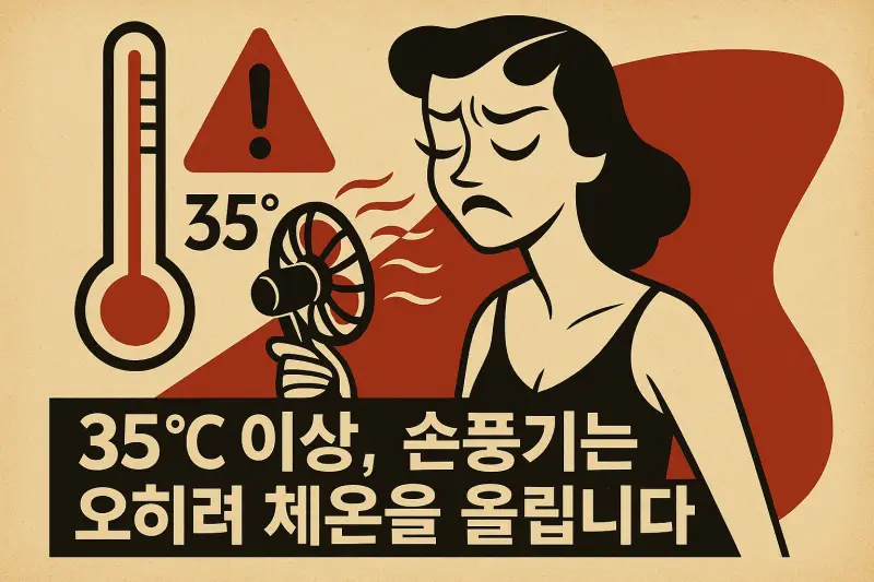 대한의사협회는 기온 35도 이상일 경우, 손풍기나 선풍기의 냉각 효과가 현저히 떨어지고, 고온 공기가 오히려 신체를 덥힐 수 있다고 경고한다. 실외 고온 환경에서는 물을 충분히 마시고 그늘에 머무는 것이 훨씬 효과적이다.
