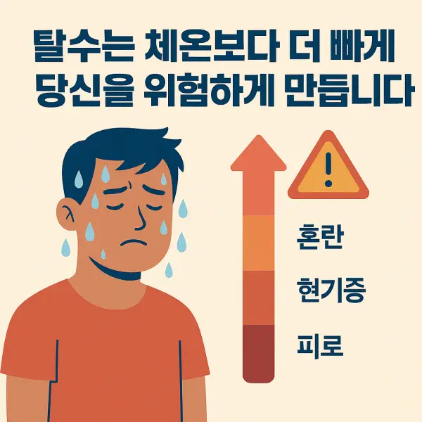 이 상태에서 땀이 계속 배출되면 체온은 올라가고, 열이 식지 않으면서 탈수 증상이 본격화된다. 이러한 변화는 의료적 개입이 필요한 수준으로 진행될 수 있으며, 이는 건강한 사람에게도 동일하게 나타난다. 따라서 수분 섭취는 단순한 생활 습관이 아니라, 여름철을 건강하게 나기 위한 필수적인 생존 전략이다.