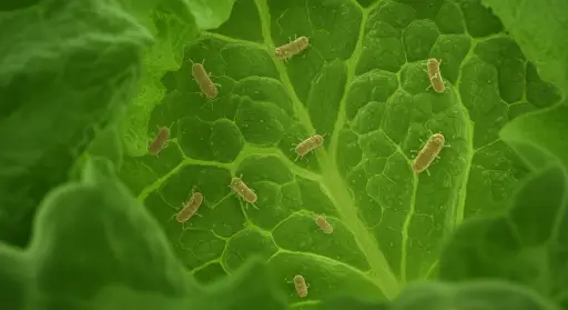 상추 잎을 자세히 보시면 어찌나 울퉁불퉁한지 모릅니다. 마치 미니 협곡 같죠. 박테리아는 이 주름진 틈새에 숨어들어 잔뜩 붙어있을 수 있습니다. 생으로 먹을 때 단순히 흐르는 물에 헹구기만 하면, 이 미세한 구석구석에 들어간 대장균은 쉽게 사라지지 않습니다.