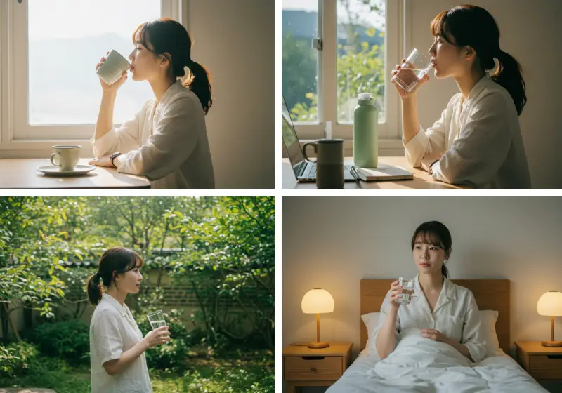 수분 섭취에도 전략이 필요합니다. 같은 양의 물이라도 섭취하는 시간과 방식에 따라 효과가 달라집니다.