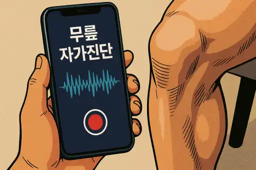 📱 스마트폰 녹음 기능을 이용해 무릎 굽힘 펴기 운동을 하며 소리를 들어보세요. 정상적인 무릎은 가벼운 뚝 소리가 나지만, 심각한 무릎 질환의 경우 비닐 꾸기는 듯한 소리가 들립니다.