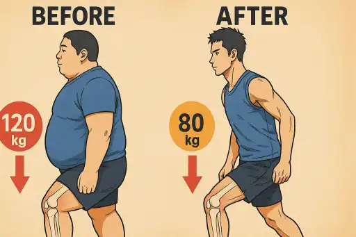 - ⚖️ 체중 감량은 무릎 관절염 예방에 가장 효과적입니다. 몸무게를 5kg만 감량해도 무릎 관절에 가해지는 압력이 20kg 이상 감소한다는 연구 결과가 있습니다. 실제로 하루 30분 빠르게 걷기, 정제 탄수화물 줄이기, 식사일기 작성 등의 생활습관 개선만으로도 연간 3~5kg 이상의 체중을 줄인 사례가 많습니다. 식이조절과 유산소 운동을 병행한 50대 이상 여성 대상 연구에서, 6개월간 평균 4.2kg 체중 감량과 함께 무릎 통증 점수가 현저히 감소한 결과가 보고되었습니다.
