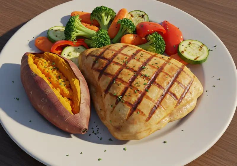 요일 아침 점심 저녁 1일차 그릭요거트 + 블루베리 닭가슴살 샐러드 연어구이 + 채소 2일차 아침 생략 (16:8 단식) 퀴노아 + 닭가슴살 돼지 안심 구이 + 버섯 볶음 3일차 삶은 달걀 2개 + 방울토마토 렌틸콩 수프 + 호밀빵 오이무침 + 훈제연어 4일차 아침 생략 단백질 쉐이크 + 바나나 구운 버섯 샐러드 + 두부 5일차 블루베리 + 저지방 우유 현미밥 + 계란말이 + 김 오트밀죽 + 사과 6일차 아침 생략 닭가슴살 야채볶음 토마토 수프 + 곡물빵 7일차 채소죽 고구마 + 삶은 달걀 두부김치 + 채소무침