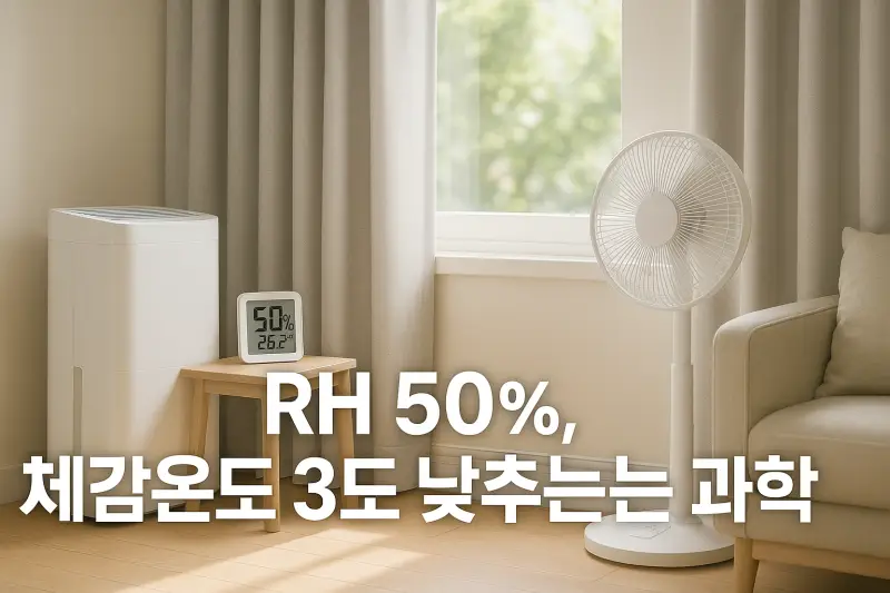실내 습도를 40~55%로 유지하면 체감온도를 2~3°C 낮출 수 있고,