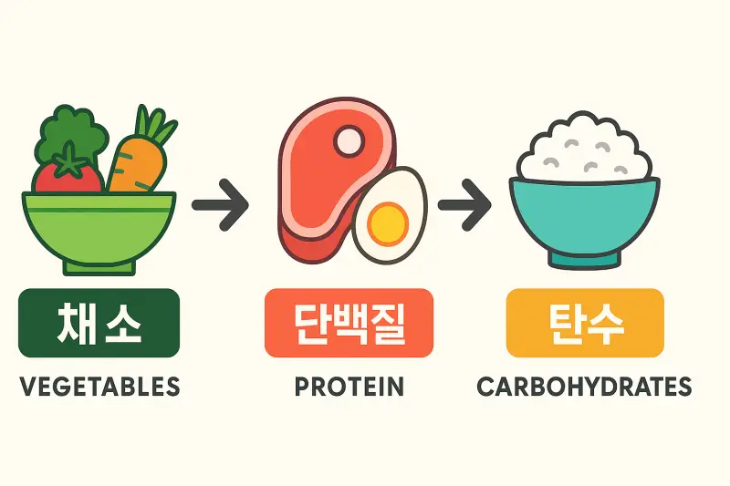 ③ “식사 순서 해킹” — 채소→단백질→탄수