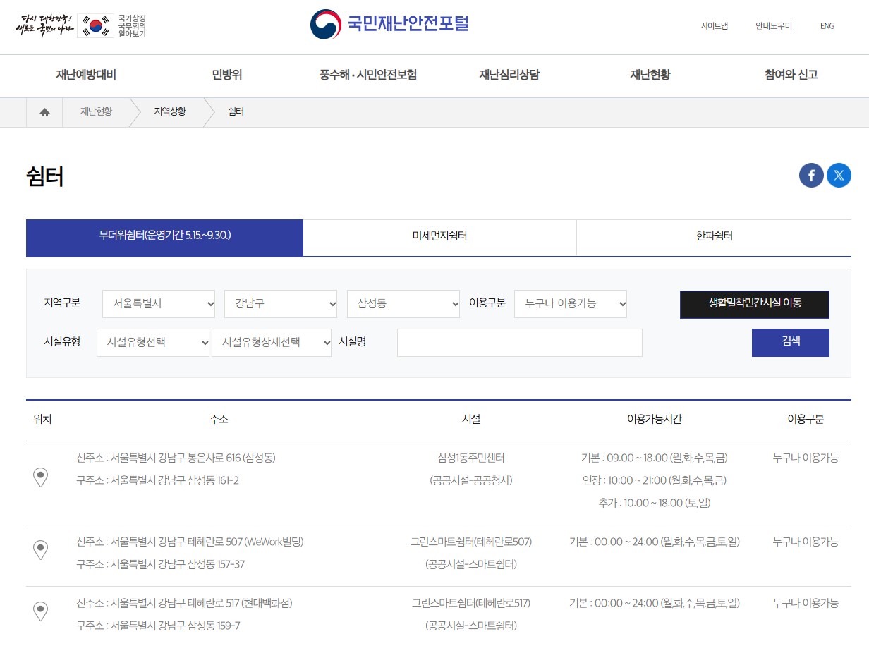 아래 링크에서 자신의 위치근처의 무더위 쉼터를 확인하세요
