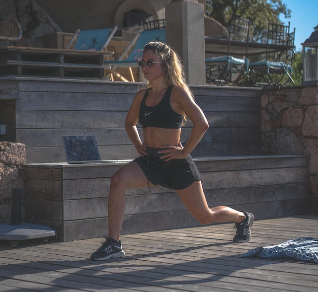 2. 런지 : 앞, 뒤, 옆으로의 런지 운동은 허벅지의 앞과 뒤 근육을 타깃으로 합니다.