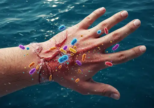 🔹 둘째, 피부에 상처가 있는 상태에서 바닷물에 접촉했을 때 균이 직접 침입해 피부 감염 및 패혈증으로 진행할 수 있습니다.